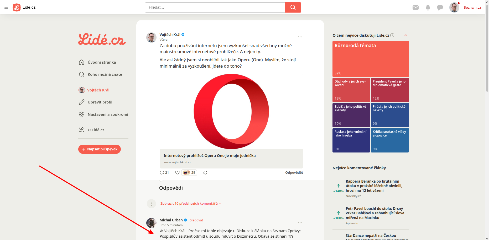 Když jsem dne 16. 4. 2026 na sociální síti Lidé.cz sdílel svůj článek z prostředí informačních technologií, nečekal jsem, jakou návštěvnost mi to přinese a jak obrovský bude zájem o můj příspěvek o Opeře.