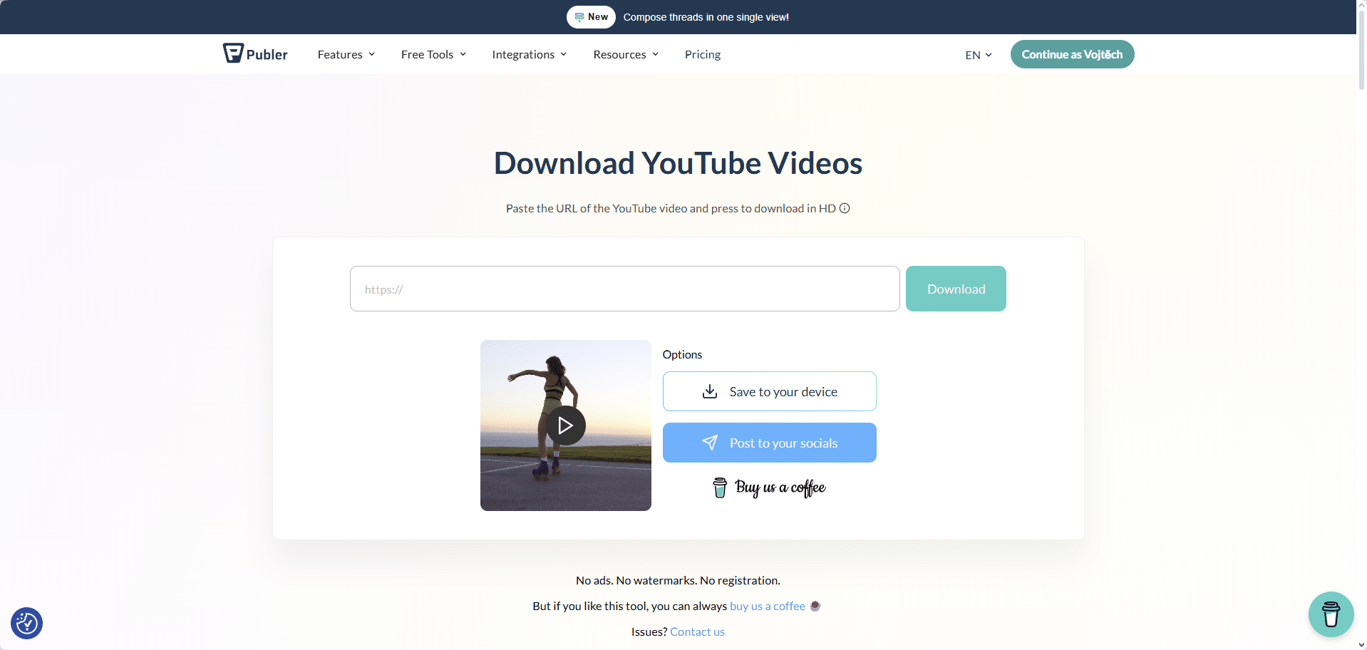 Pokud hledáte rychlý online nástroj pro jednorázové stahování a nechcete si na PC/notebook nic instalovat (nebo dokonce nemáte tu možnost), Publer se zdá být ideální volbou.