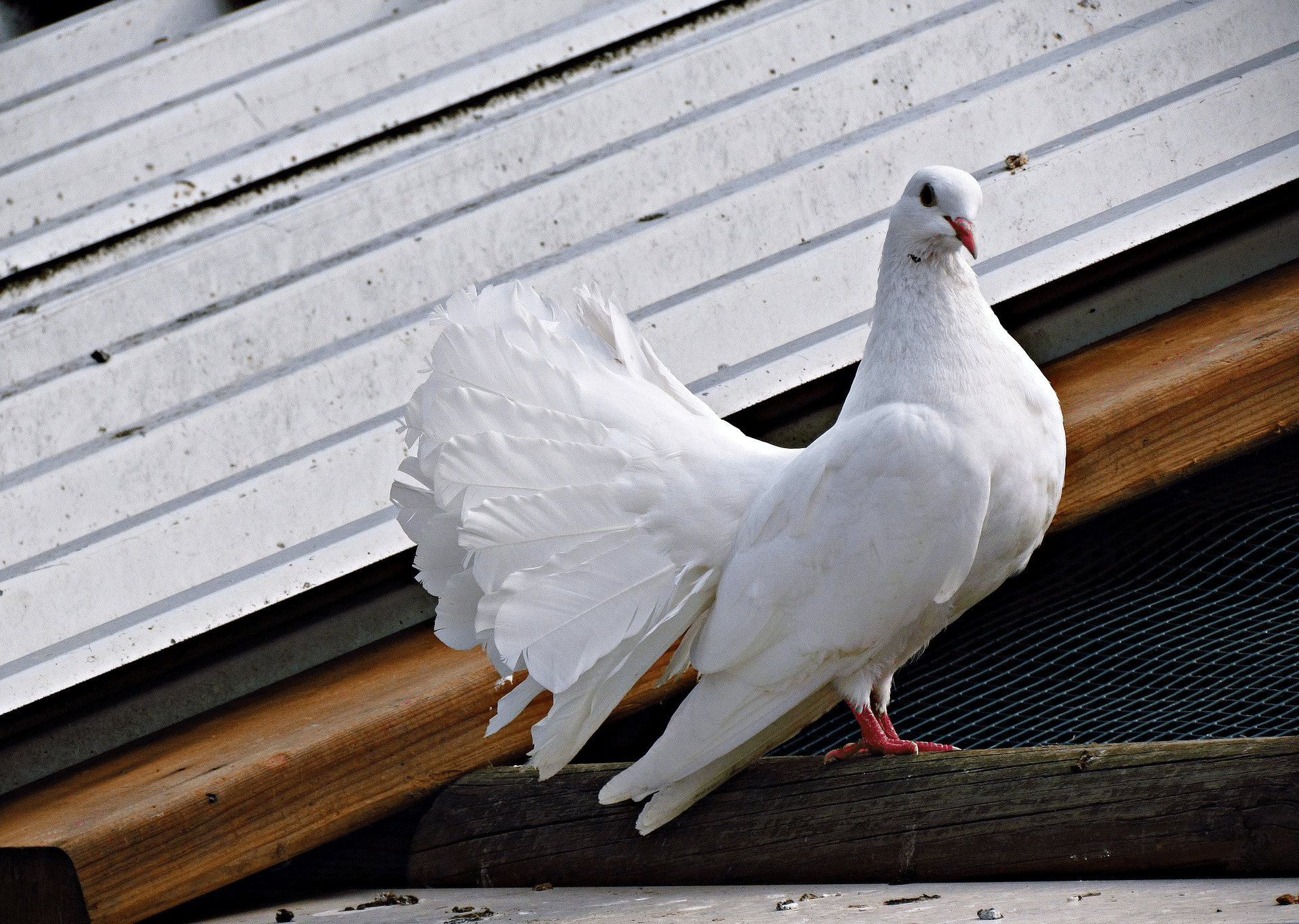 O víkendu nás poctil svou návštěvou neobyčejný exemplář zvířecí říše, bílý holub. U nás na vesnici se nevyskytují ani obyčejní holubi, kteří jsou ke spatření na vlakových nádražích apod., tak proto je to ojedinělá událost.