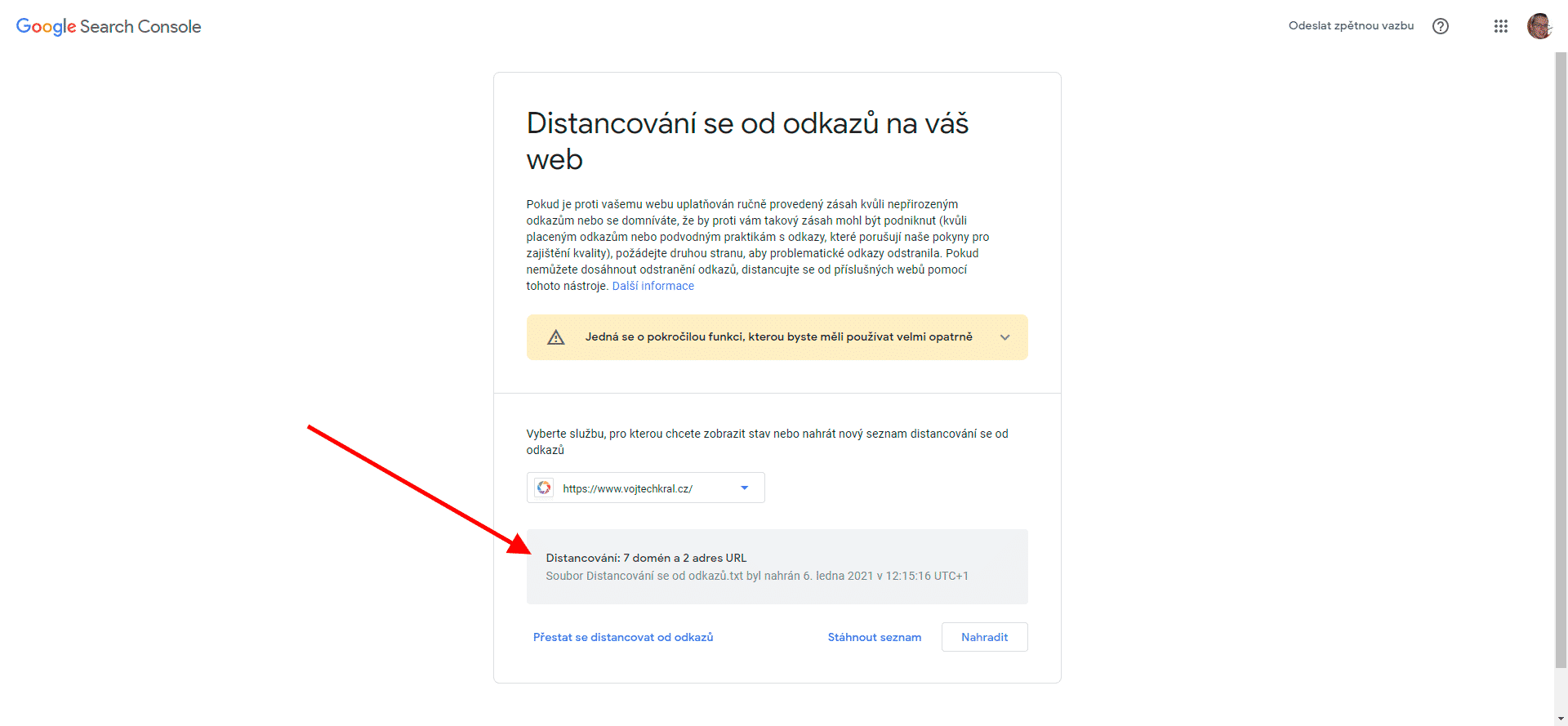 V takovém případě je nejlepším způsobem distancovat se od těchto odkazů. Nebudou tak mít na SEO žádný vliv, kladný ani záporný. V případě Google je na to nástroj Distancování se od odkazů, ve kterém jednoduše zvolíte jaké stránky se má distanc týkat (musíte ji mít v Google Search Console). Nevyplňujete žádný předem vytvořený formulář, ale připravíte si prázdný TXT soubor (Poznámkový blok), do kterého zadáte URL adresy nebo domény, ze kterých se mají odkazy vyloučit.
