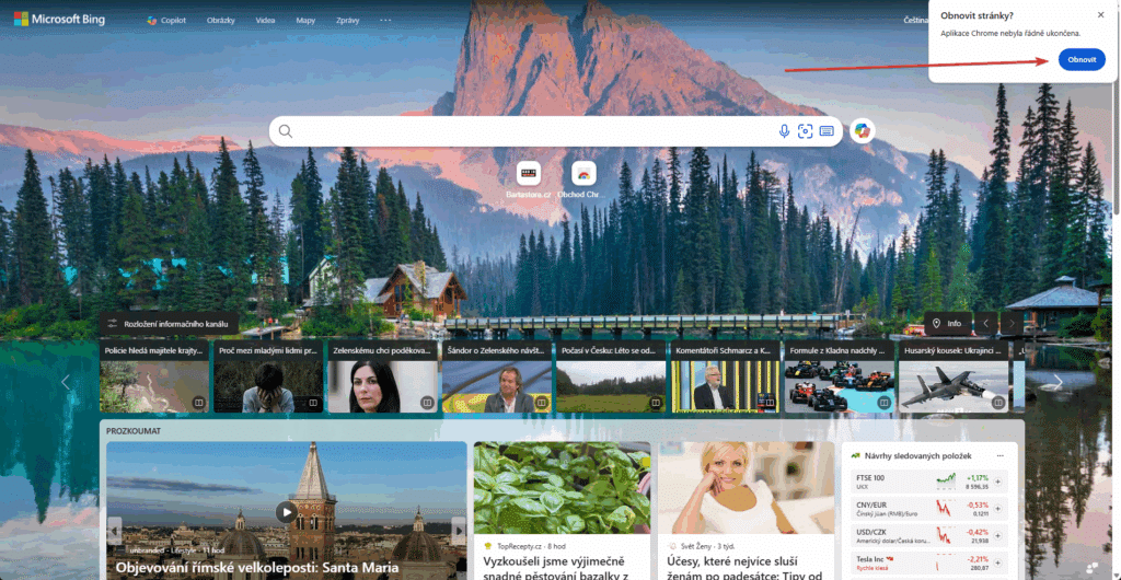 Microsoft Edge – Otevřít záložky z předchozí relace