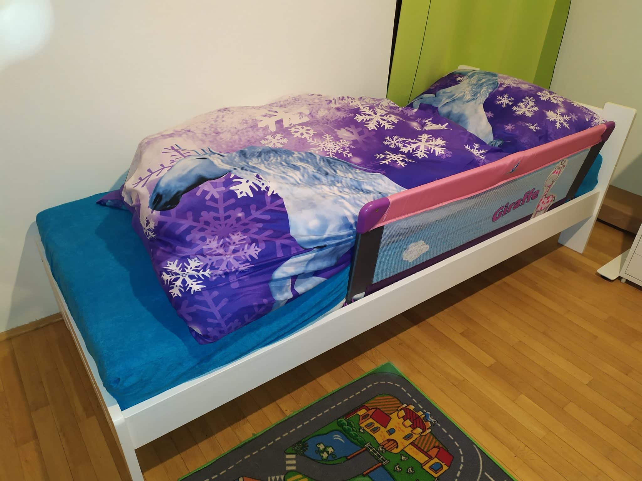 Docela osvědčené pravidlo je nekupovat to nejlevnější, takže jsme vybrali postel HEUREKA 80×200 cm v bílé barvě. Avšak trochu jsem nedůvěřoval zdarma dodávanému roštu a takový dětský pokoj nedělá člověk každý den, tak jsem zvolil rošt EASYBOX od stejné společnosti. Těch lamel tam má podstatně více.