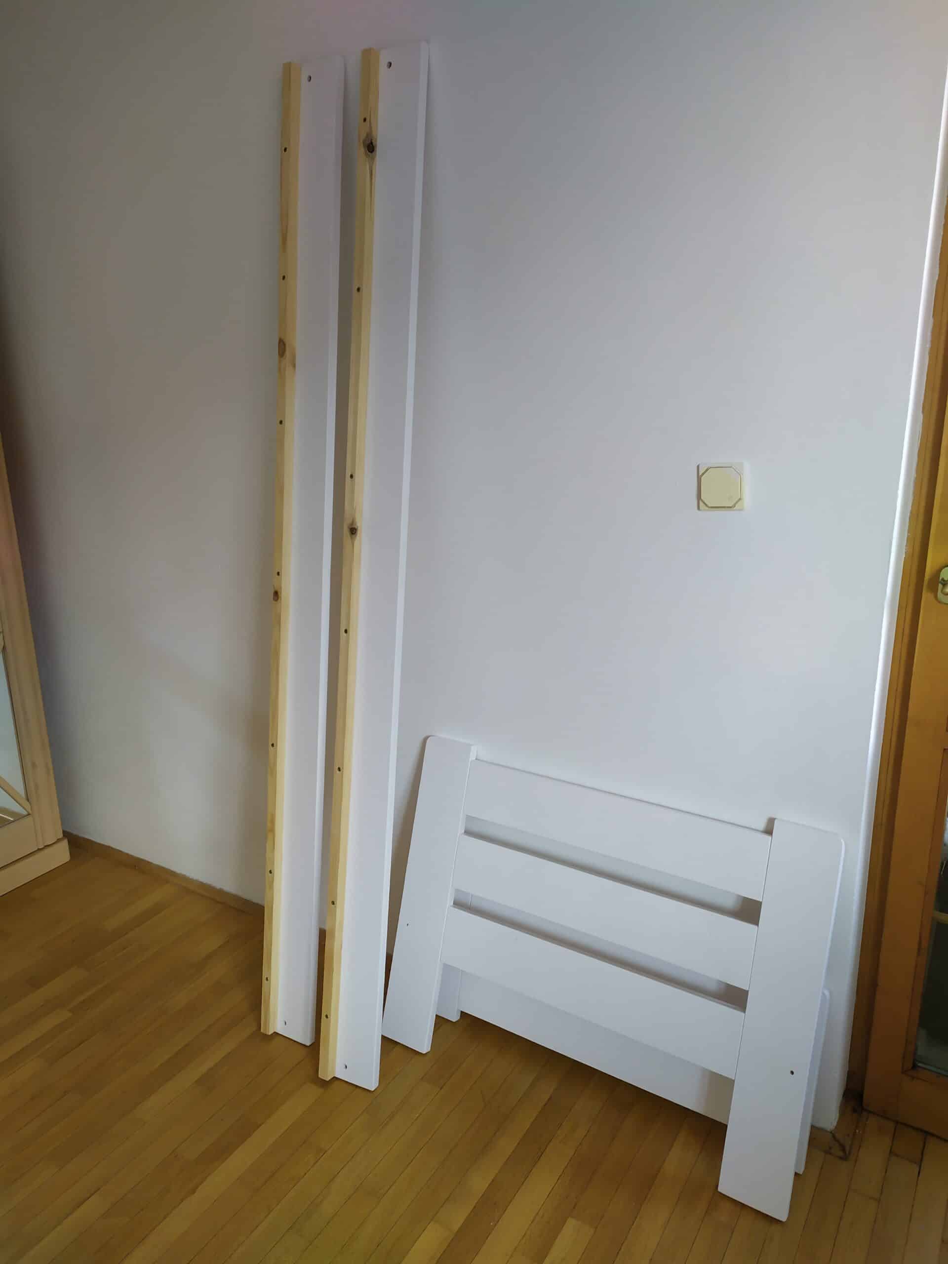 Abych ale nepředbíhal, před roštem se skládala postel. Ta byla dle očekávání balená v jedné krabici čela, v druhé krabici bočnice. Tloušťka borovicového masivu byla slíbených 2,5 cm.