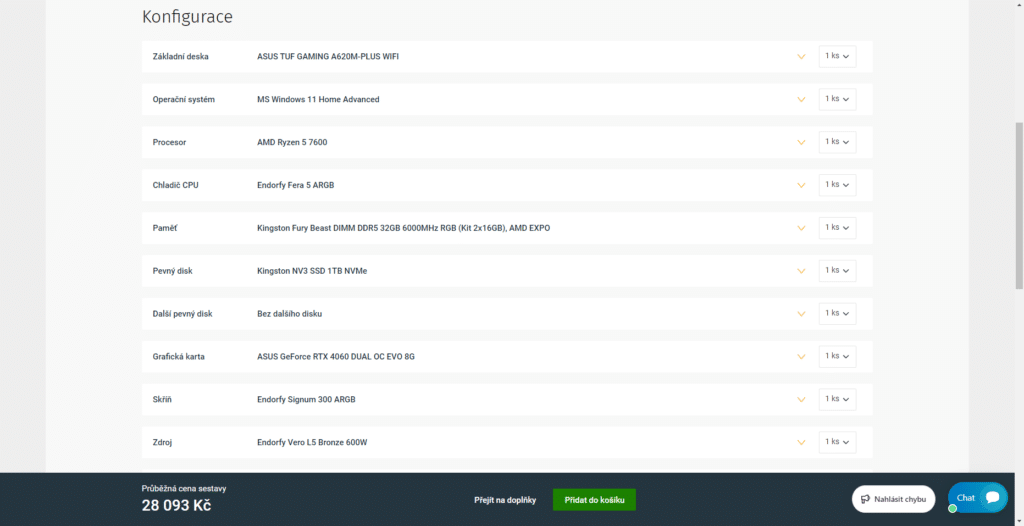 Jakmile budete s konfigurací spokojeni, přidáte sestavu do košíku a můžete objednávat. Doba dodání se odvíjí především od dostupnosti jednotlivých komponent, ale bývá to rychlé. V rámci několika dní.