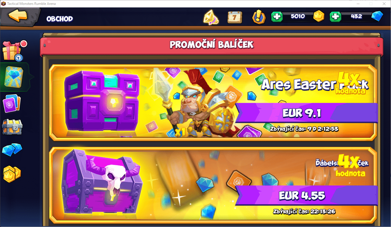 Hra dále vybízí k integraci s Facebook účtem či zadání hráčova e-mailu. Je jasné, že má tendenci se šířit dále a poskytuje za to hráči bonusy, ale já bych měl v tomto případě spíše strach, aby nezačala chodit nevyžádaná pošta (spam).
