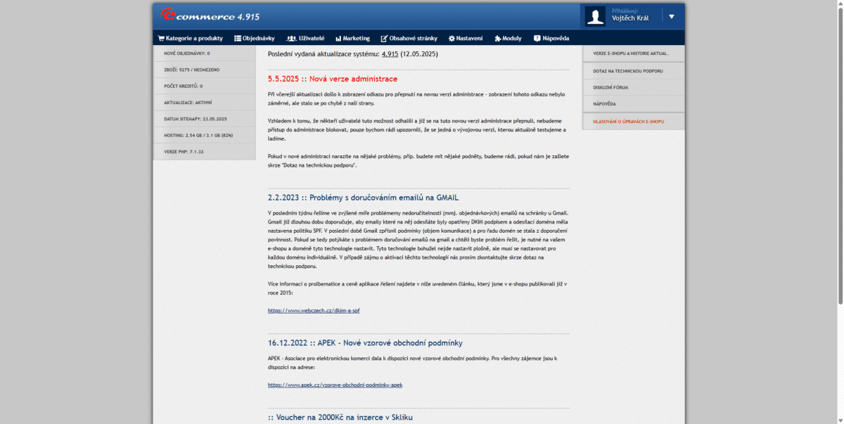 Už je to dlouhá doba, co jsem kritizoval staromódní administrační rozhraní jihomoravského e-shopu Webczech. V porovnání se Shoptet nebo Upgates nevypadá moderně, ale co vím od klientů i vedení, lidé na něj jsou zvyklí a vyhovuje jim. Svým způsobem je přehledné, funkční na jakémkoliv prohlížeči a velice svižné.