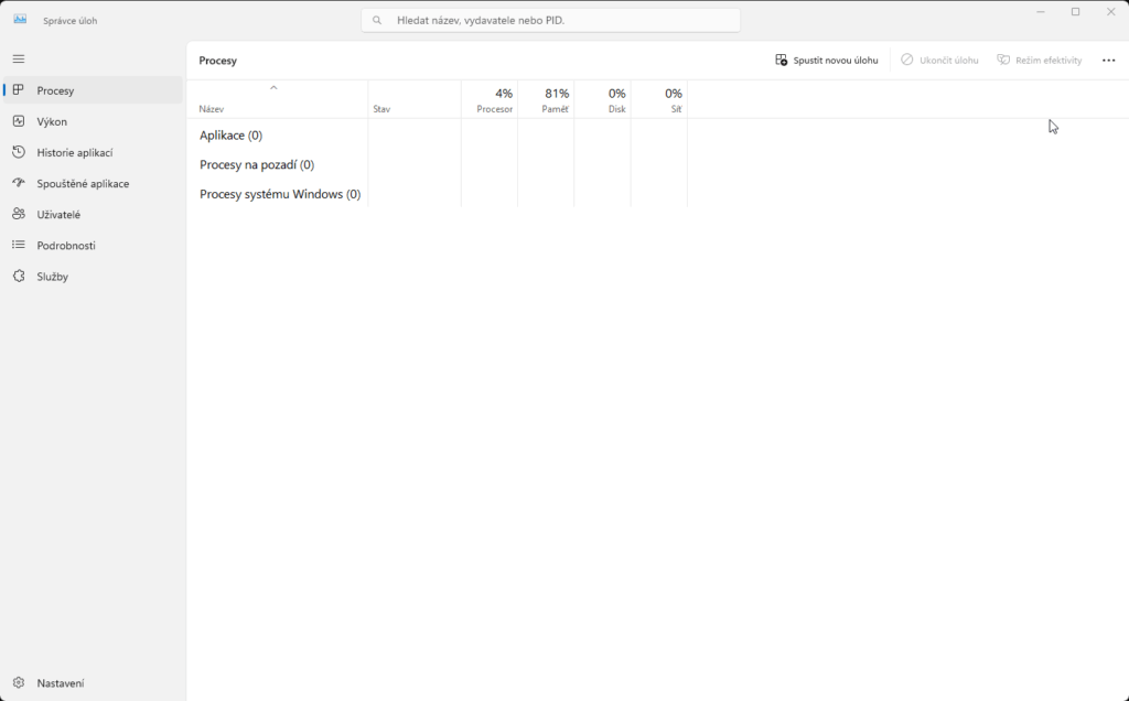Bohužel se nejen mně stává, že správce úloh ve Windows 11 přestane zobrazovat běžící procesy. Jako by vůbec žádný neběžel (zobrazí se počet procesů nula).