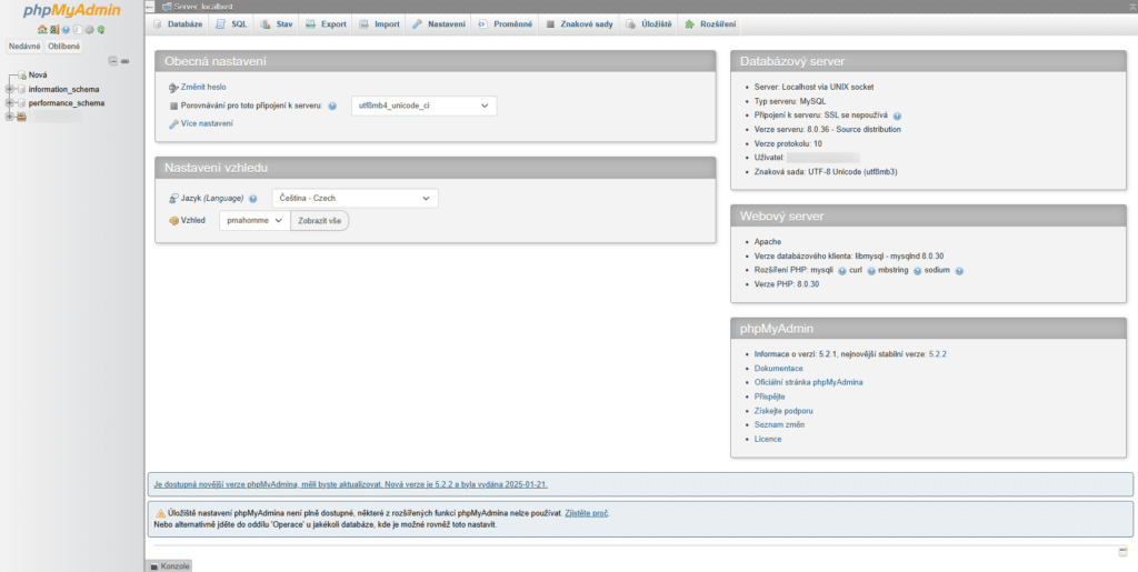 Tyto údaje nesmíte měnit, jinak porušíte připojení k databázi a znefunkčníte web. Pomocí těchto údajů se přihlásíte do databáze webu s plnými právy. Můžete provést potřebné změny/opravy.