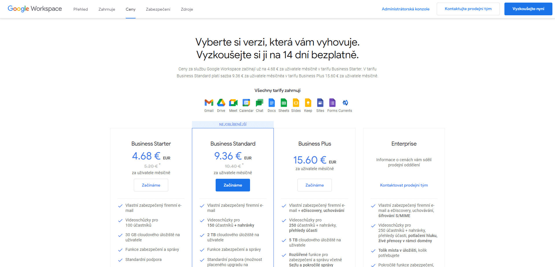 Dokumenty Google jsou cloudovou službou, která spadá do portfolia Google účtu. K přístupu tedy potřebujeme založit Google účet, který je zcela zdarma a bude pod doménou gmail.com. Pokud chcete využívat služeb Google účtu pod svou vlastní doménou, jedná se o placený balíček Google Workspace, jehož cena startuje na 4.68 €/měsíc.
